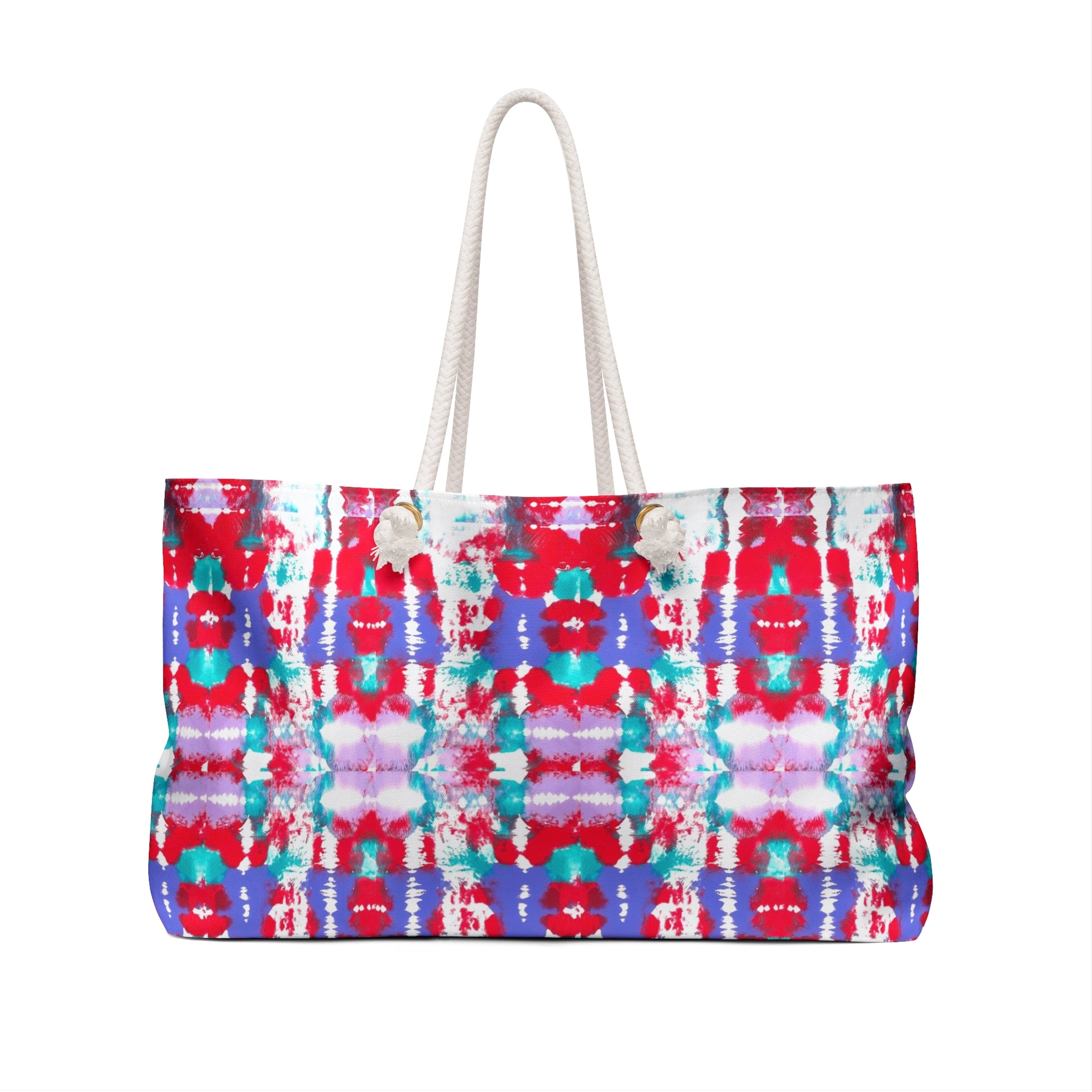 Art by Annie Aymond the Lena print in Our oversized Weekender Tote is perfect for your weekend at the beach or in town. The wide-mouthed, durable bag holds a generous amount of personal items and is easily held by its thick rope handles.