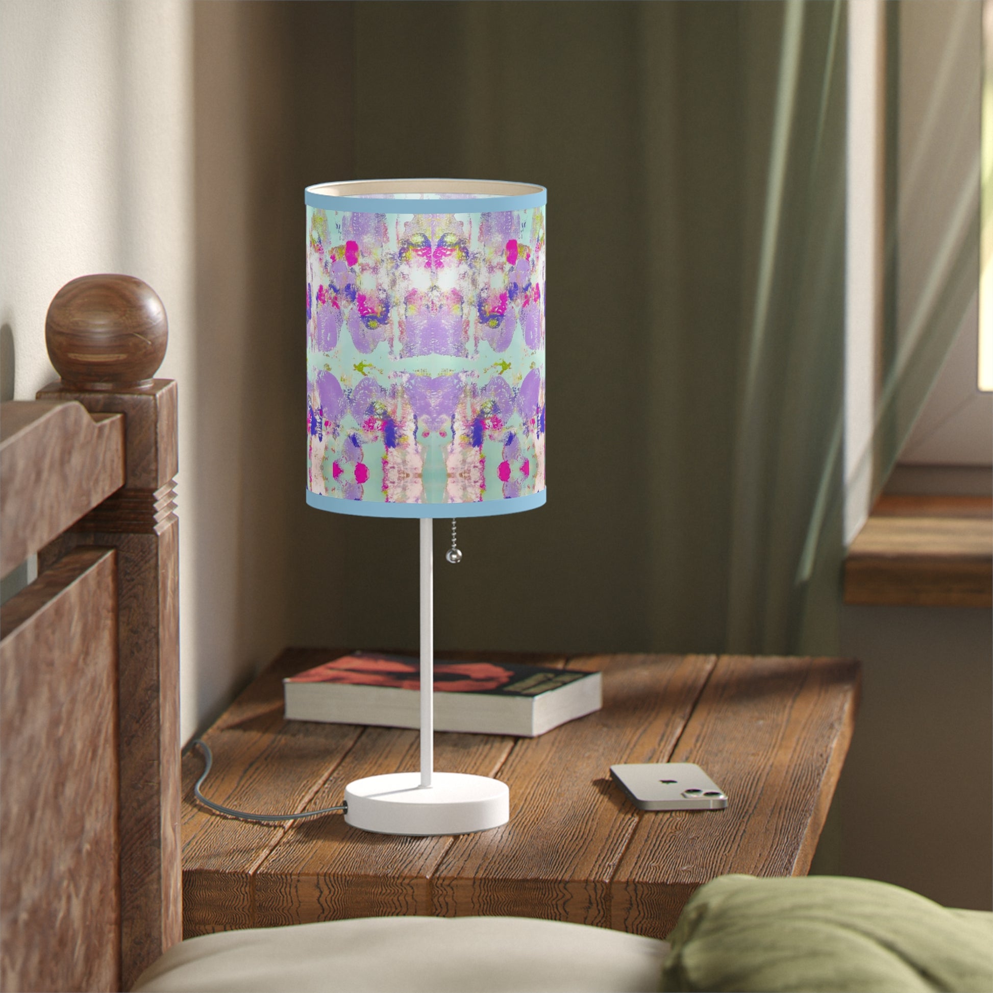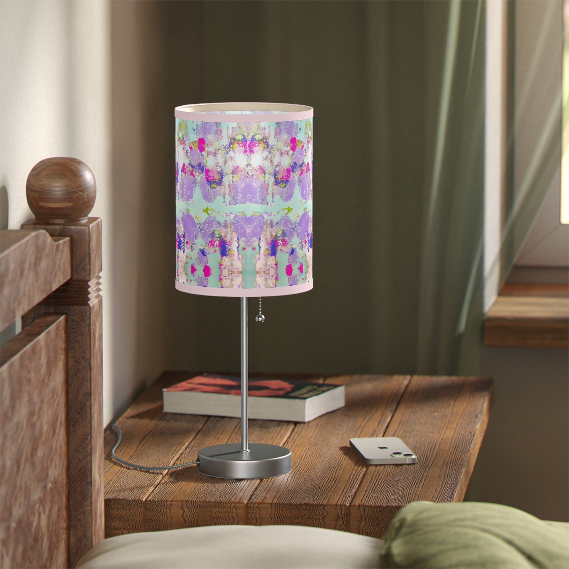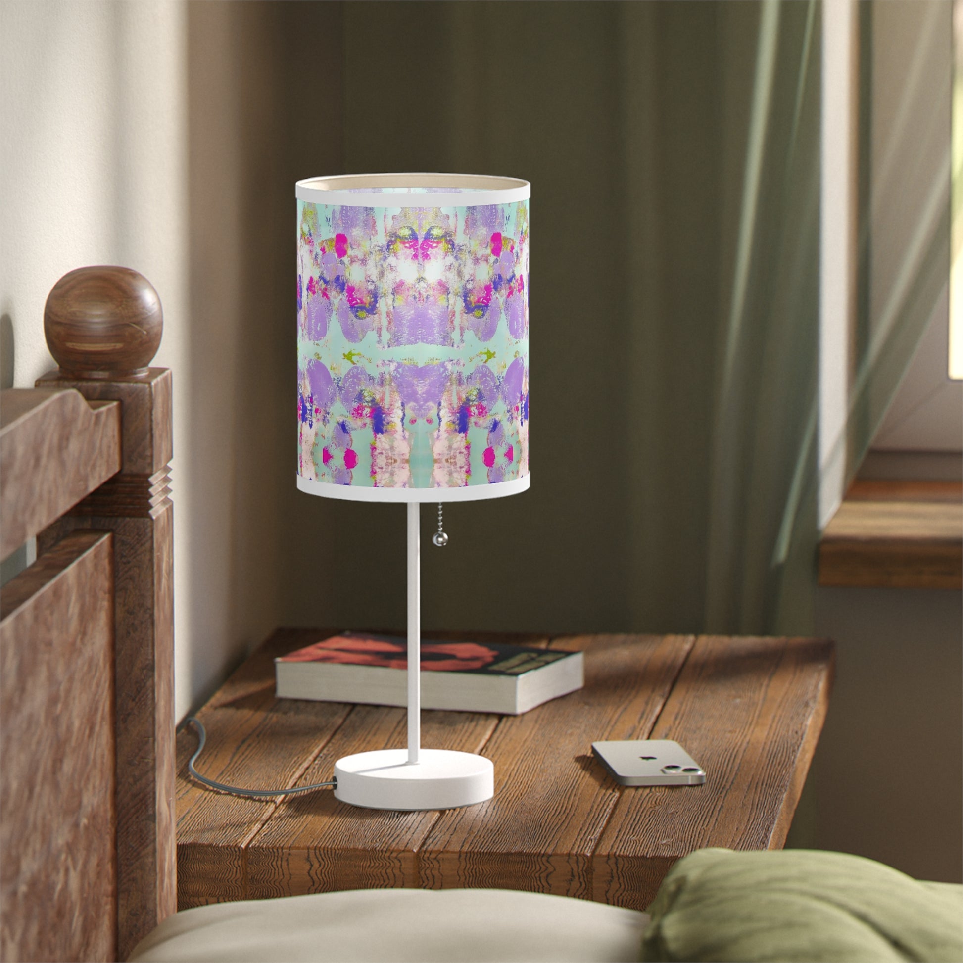 Art by Annie Aymond the Lauren print in This unique table lamp stand features a steel base that comes with a classy finish in silver or white. The shade of the lamp is available in 10 different trim colors and can accommodate all your designs in high-resolution printing.