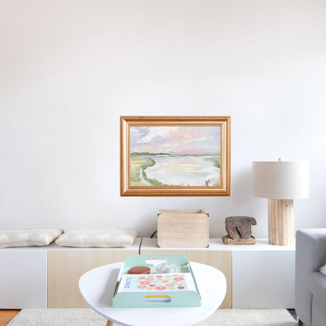 Soft light, gentle movement, and the hush of an open bayou. Pastel bayou captures the serene beauty of nature’s subtle colors pale greens, blush pinks, and a calm sky reflecting on still water. Painted on an 8x10 canvas panel, this piece brings a breath of fresh air to any shelf, gallery wall, or small space.