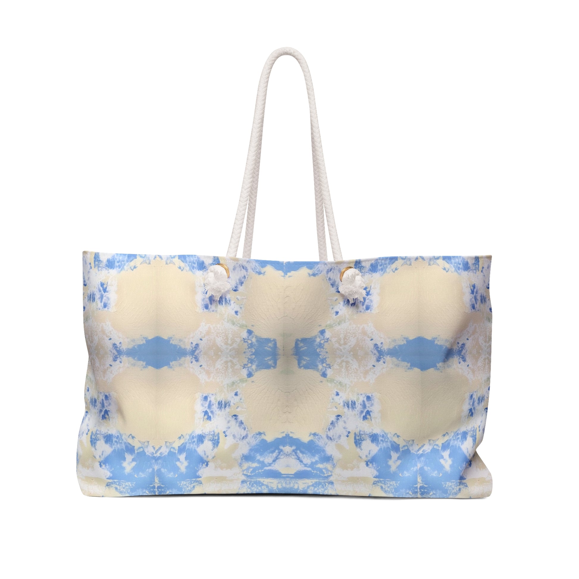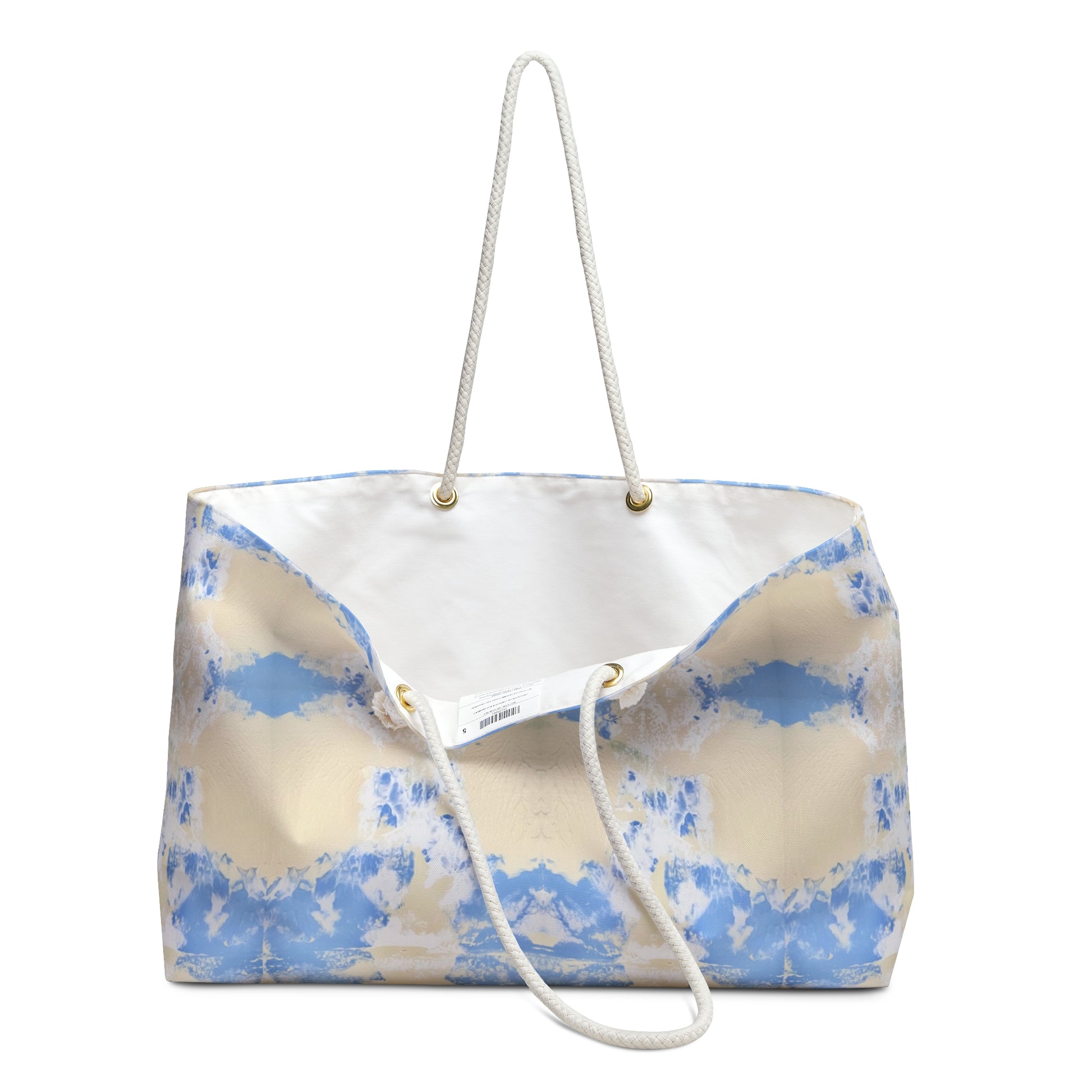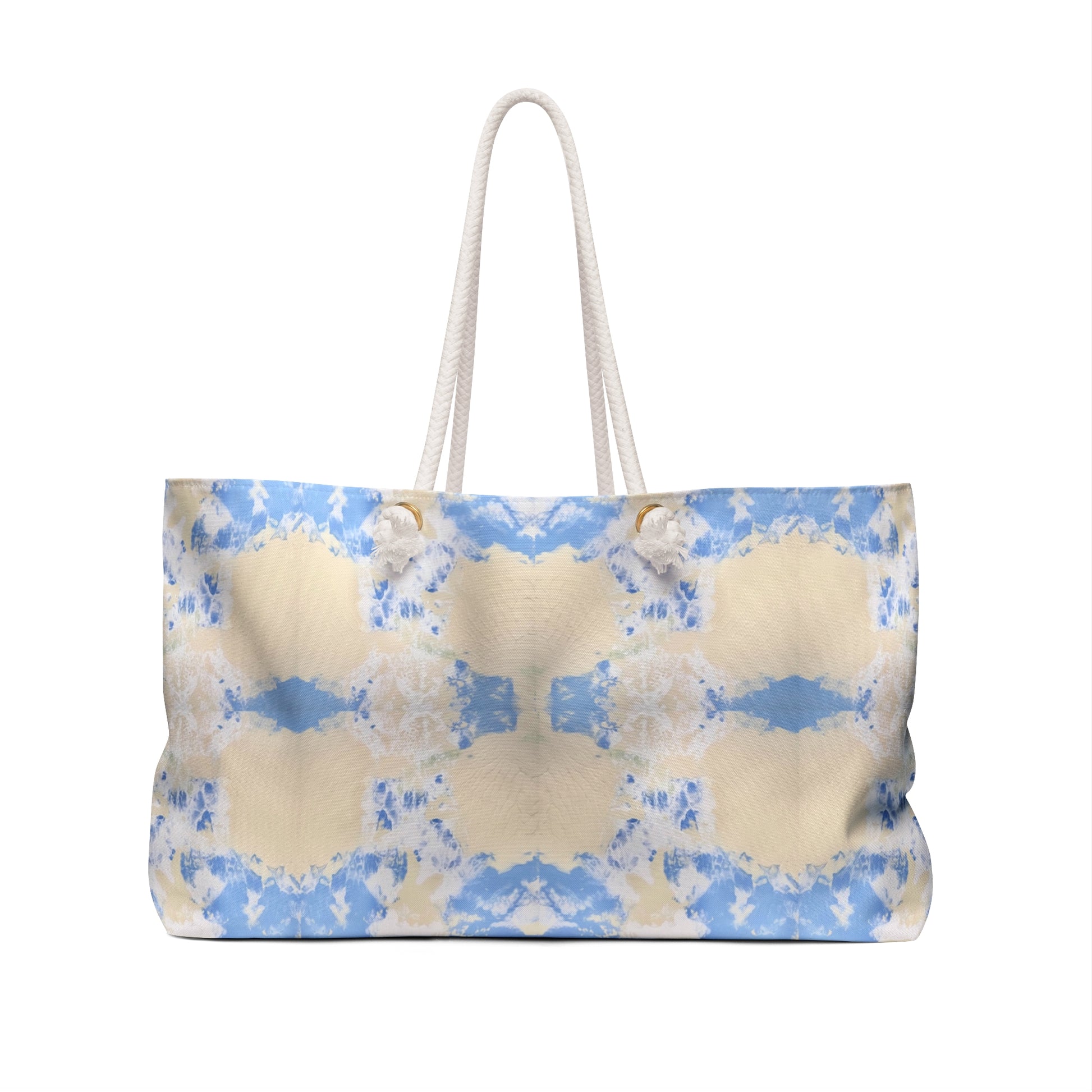 Art by Annie Aymond The Jennifer Print oversized Weekender Tote is perfect for your weekend at the beach or in town. The wide-mouthed, durable bag holds a generous amount of personal items and is easily held by its thick rope handles.
