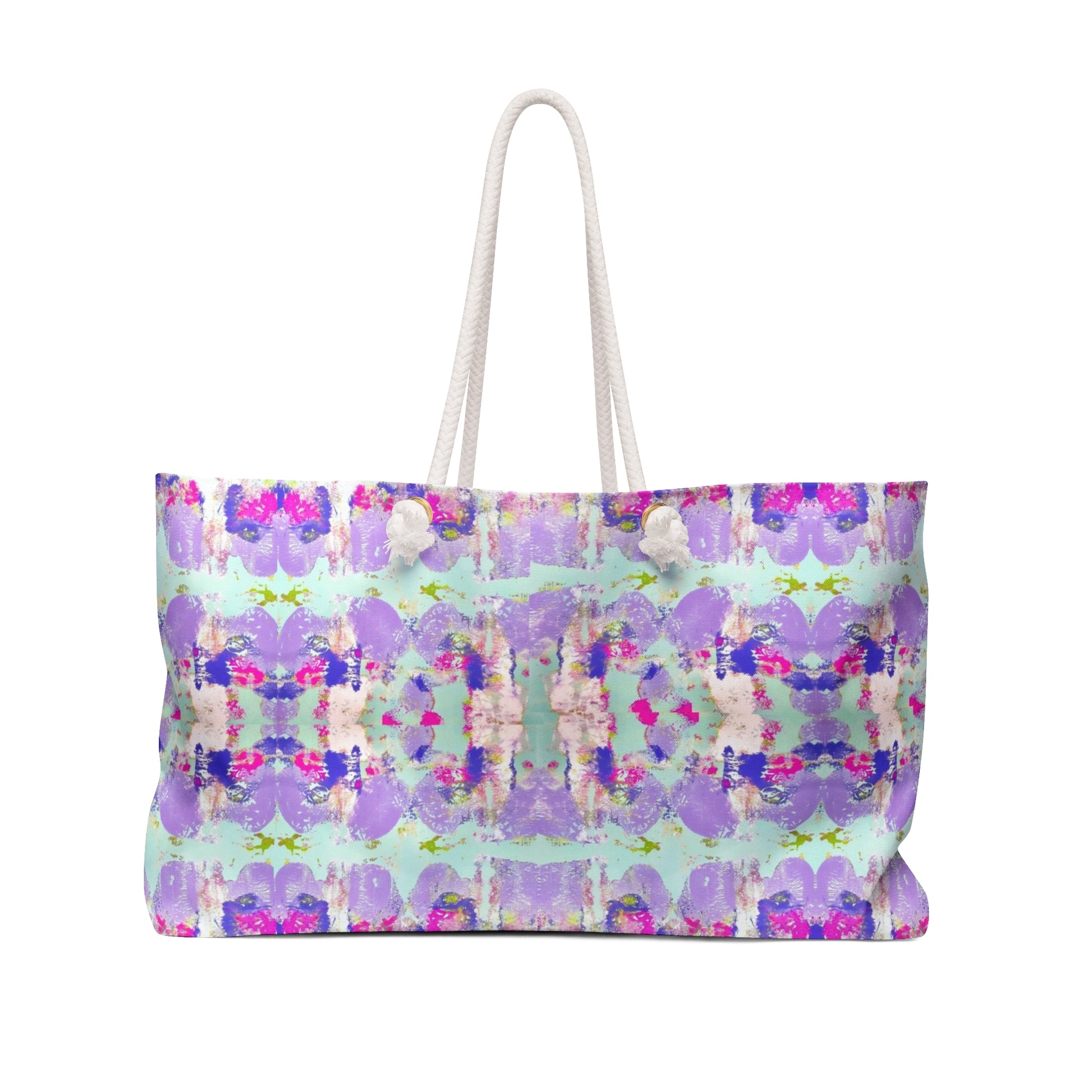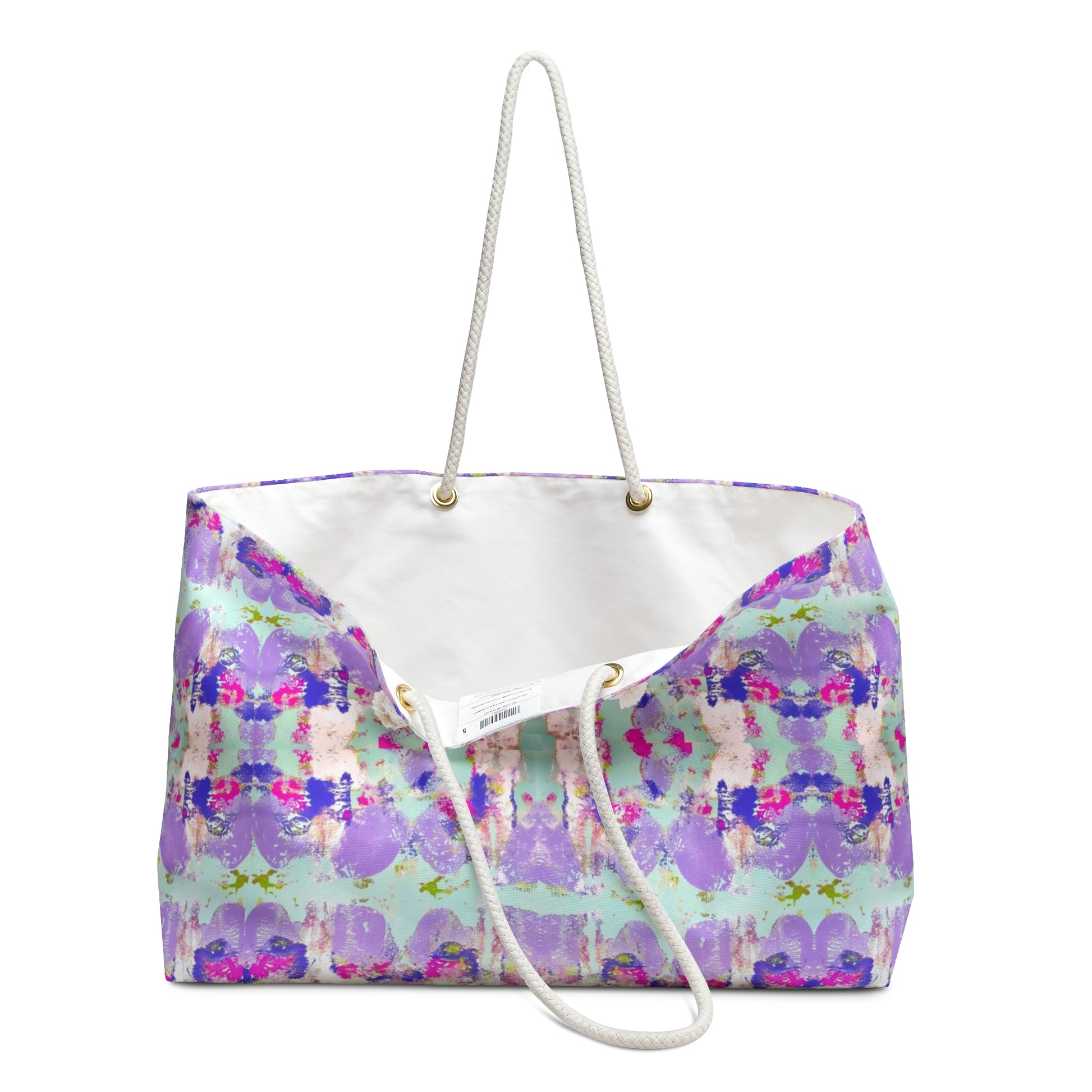 Our Art by Annie Aymond Lauren print is in an oversized Weekender Tote is perfect for your weekend at the beach or in town. The wide-mouthed, durable bag holds a generous amount of personal items and is easily held by its thick rope handles.