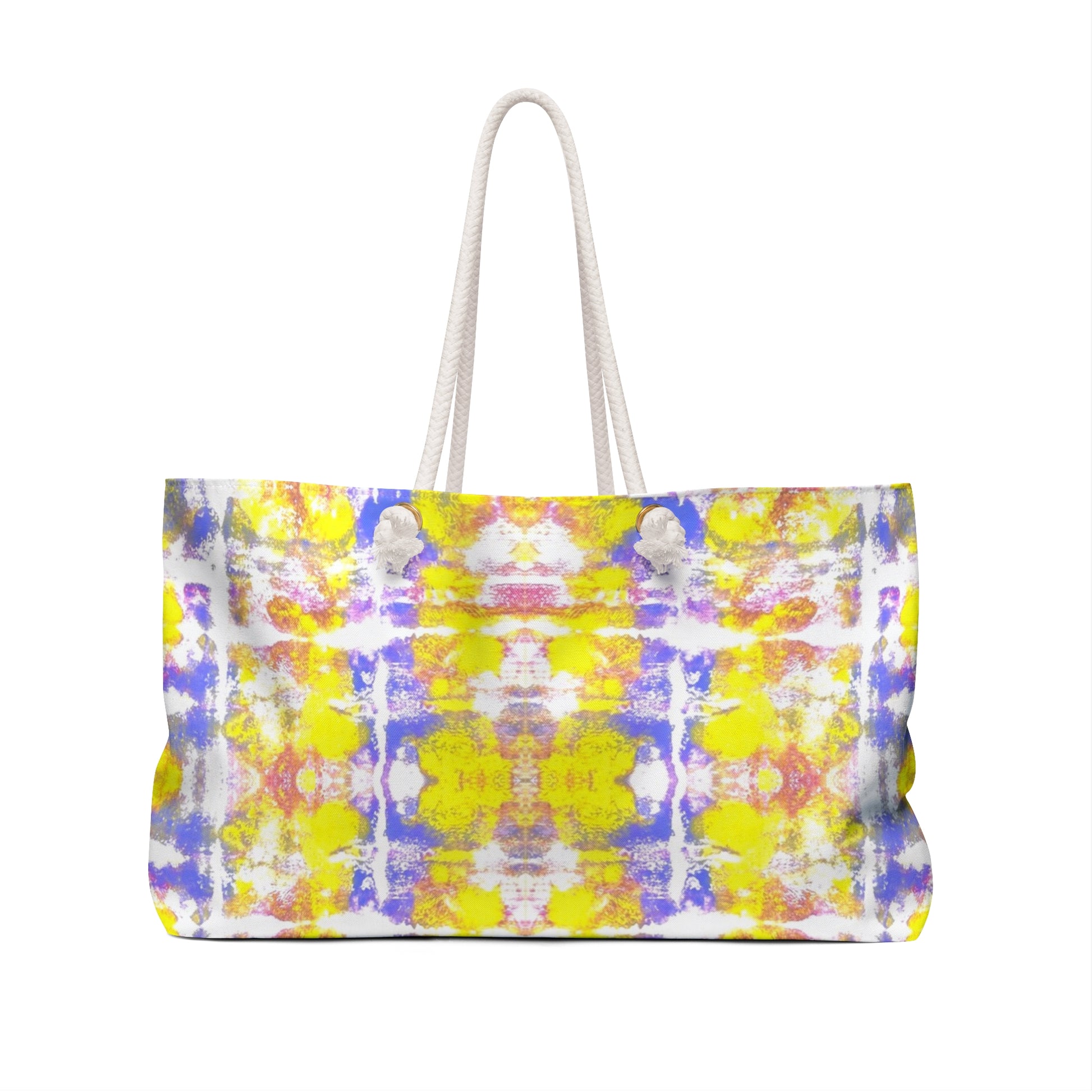 Our oversized Weekender Tote is perfect for your weekend at the beach or in town. The wide-mouthed, durable bag holds a generous amount of personal items and is easily held by its thick rope handles.